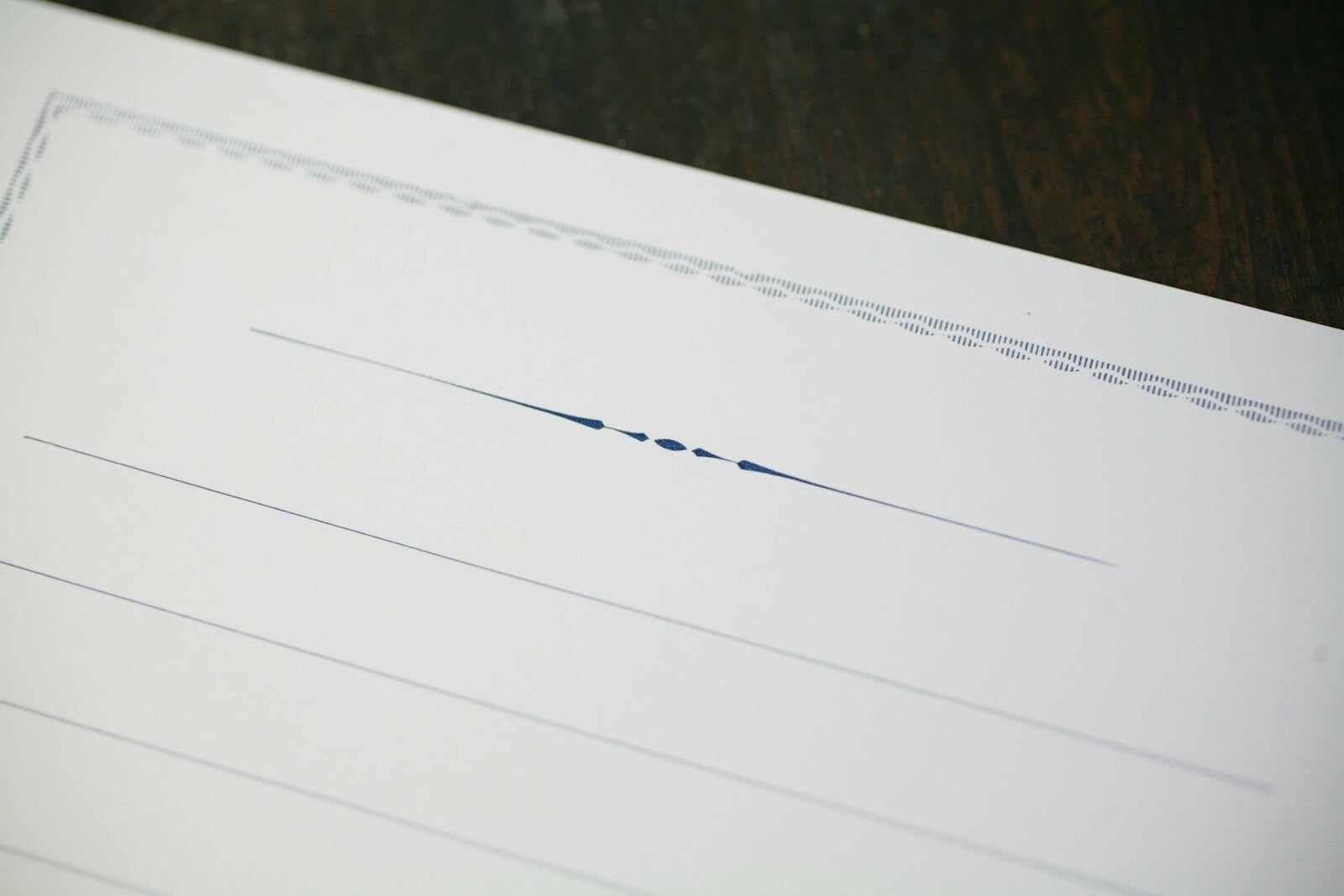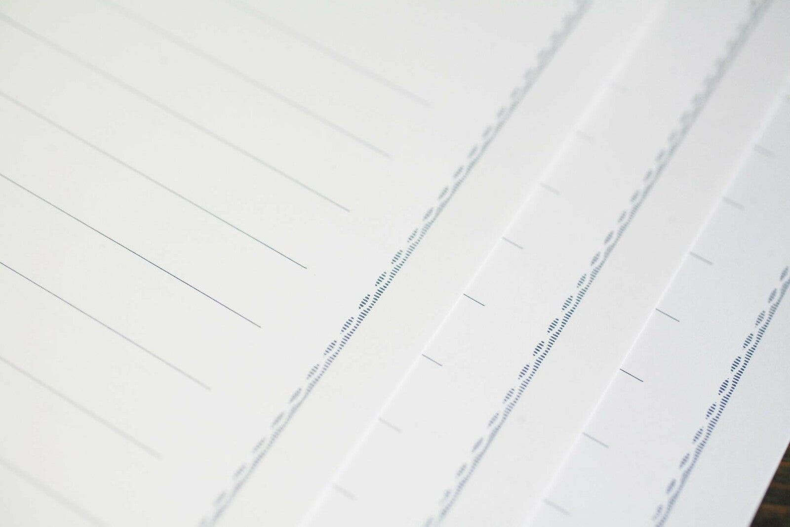 This paper is comfortable to write on with pencil, ballpoint pen, and of course the popular fountain pen, as it does not bleed and runs smoothly.